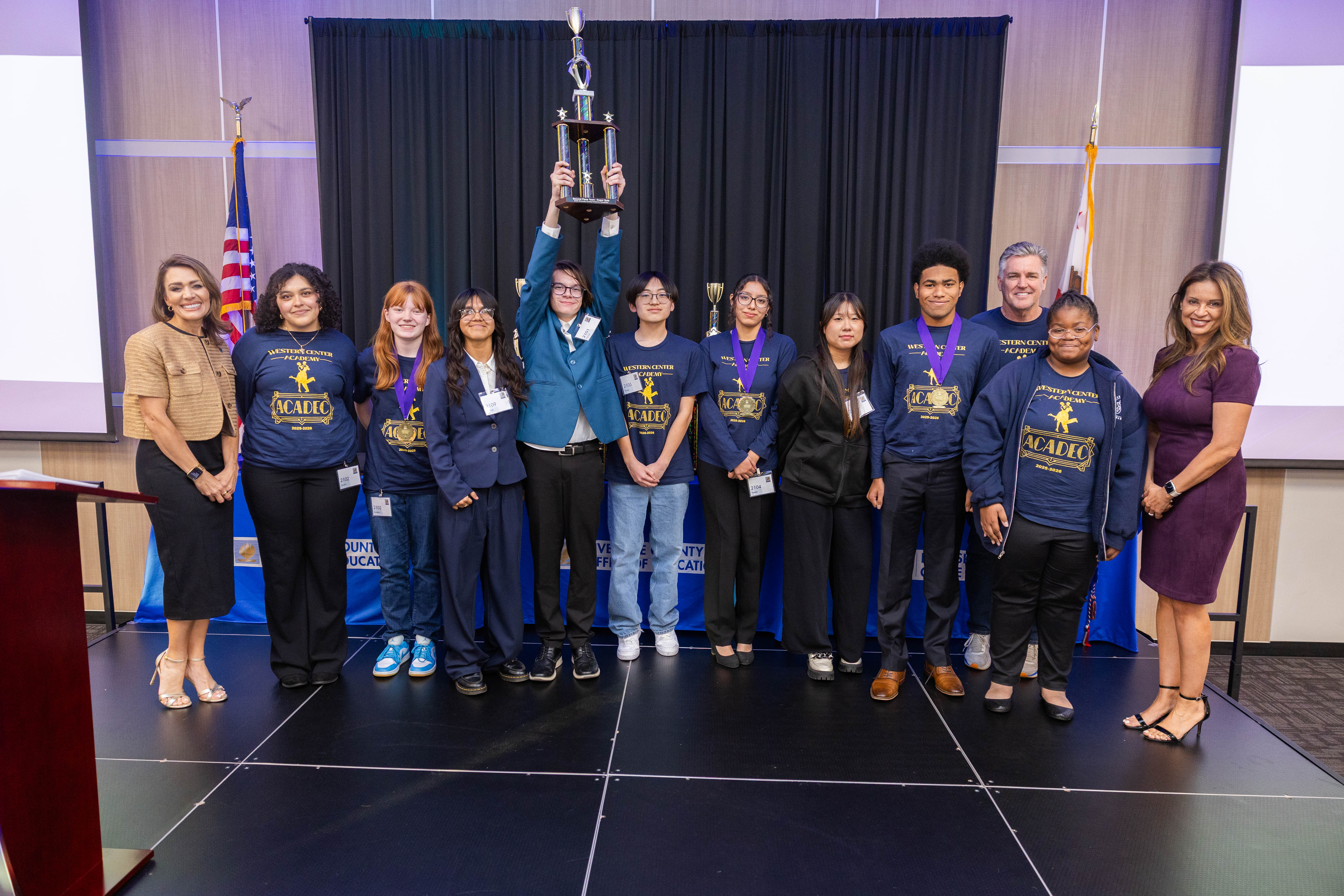 The competition started virtually with essay writing and objective tests on January 14. All teams proceeded to the speech and interview competition and Super Quiz on Saturday, January 31, held at the Riverside County Office of Education Conference Center in downtown Riverside. The awards ceremony recognized top individual finishers immediately following the Super Quiz.