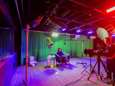 The re-developed space built within a former conference center also features dedicated team rooms, a wellness room, a podcast/video blog studio, a broadcast studio with control room, a tech lounge with collaborative meeting space, and several offices. Construction partners on the project included DLR Group and Erickson Hall Construction.
